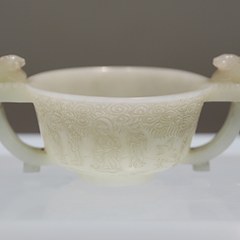 其中龙山文化穿孔玉斧两面磨刃,通体磨光;清乾隆于阗采玉图玉山子,背面镌刻了乾隆皇帝御题《于阗采玉》题记一首;清代乾隆兽纹黄玉扁瓶,雕有趴伏的螭虎、凸起的云纹;还有与大军阀何春江报恩故事有关的「岱岳之星」钻石。