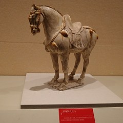 展品中最具有历史意义的为一对北燕时期的鎏金铜木芯马镫。这对马镫出土于辽宁北票西官营子冯素弗墓,年代为北燕太平七年(公元415年),是迄今为止有明确年代可考的完整双马镫实物,也是中国乃至世界上较早的骑乘用马镫实物,比欧洲最早出现的马镫早了约300年。