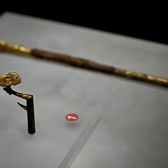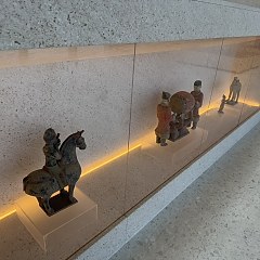 展览集中呈现两个遗址近十年考古新发现与研究成果。其中孔子漆衣镜镜匣(仿制品)背面的孔子及弟子肖像,还原了目前所知最早且唯一的早期孔子肖像;马蹄金器经矫形、拼接与补配后,恢复其原有形制与纹饰,再现汉代黄金工艺辉煌。