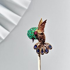 「灵动自然」展现梵克雅宝对自然的欣赏与敬意,如创作于1940年代的花束作品,以 Mystery Set 隐密式镶嵌工艺打造,镶嵌蓝色与黄色蓝宝石,仿若在晨露中采撷而来;身姿轻盈的飞鸟也是一直备受珍爱的主题,1969年面世的 Swan 胸针以铺镶钻石的铂金演绎天鹅轻灵优雅的身姿,再以红宝石点睛,洋溢着蓬勃生命力。