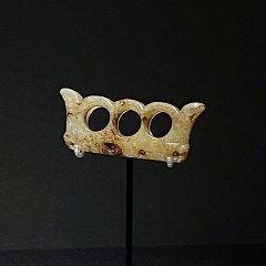 玉双鸮首饰,新石器时代红山文化晚期,1991年辽宁朝阳牛河梁遗址出土,辽宁省文物考古研究院藏