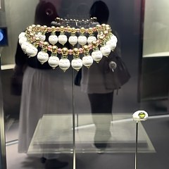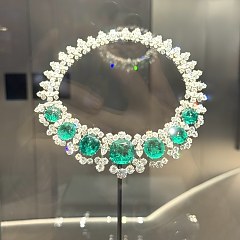 重要展品包括以「灵蛇」为主题的 Serpenti 项链、Serpenti 晚宴包,一组交替组合祖母绿、紫水晶、绿松石和钻石的项链和耳环套装,一件镶嵌7颗总重118.46ct的枕形切割哥伦比亚祖母绿的项链,以及垂坠一颗127.35ct心形雕花祖母绿的长项链等。