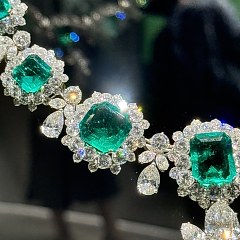 重要展品包括以「灵蛇」为主题的 Serpenti 项链Serpenti 晚宴包,一组交替组合祖母绿、紫水晶、绿松石和钻石的项链和耳环套装,一件镶嵌7颗总重118.46ct的枕形切割哥伦比亚祖母绿的项链,以及垂坠一颗127.35ct心形雕花祖母绿的长项链等。