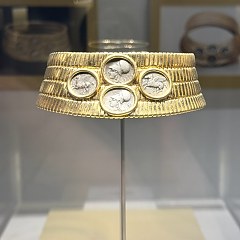 运用黄金制作,镶嵌青金石、缟玛瑙和钻石。