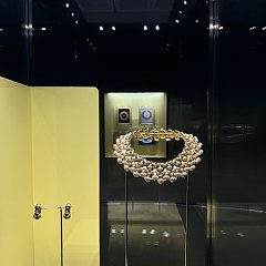 本次展览以三个篇章揭示宝格丽的色彩美学精髓。第一章「色彩的科学」展现宝格丽如何基于色彩理论巧妙组合彩色宝石,呈现极具感染力的色彩效果;第二章「色彩的象征性」深入探讨色彩的文化和象征意义,展示宝格丽如何通过色彩选择来传达意义和情感;最后一章「光的力量」聚焦光在人们感知色彩的过程中的作用,呈现宝格丽如何以精湛的金属工艺、宝石切割及镶嵌工艺,打造光彩夺目的珠宝珠宝。重要展品包括以「灵蛇」为主题的 Serpenti 项链、Serpenti 晚宴包,一组交替组合祖母绿、紫水晶、绿松石和钻石的项链和耳环套装,一件镶嵌7颗总重118.46ct的枕形切割哥伦比亚祖母绿的项链,以及垂坠一颗127.35ct心形雕花祖母绿的长项链等。