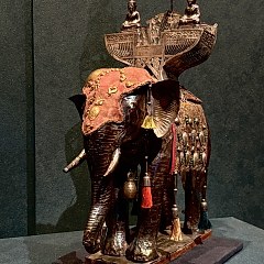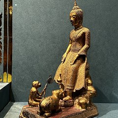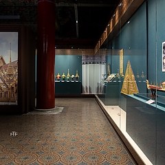 第三单元「良工巧治」展示泰国王室艺术,以器物功能分作礼仪及实用器、饰物、戏剧服饰,辅以清宫上述几类相应文物,呈现中泰两国宫廷在礼制规范、艺术审美及日常生活等维度的文化特征。第四单元「艺脉绵长」呈现泰国古代技艺在当代的传承与发展。
