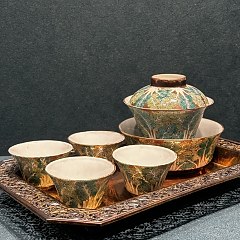 白地釉上彩描金白菜纹茶具,19世纪,泰国国家博物馆藏