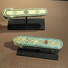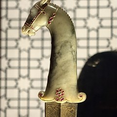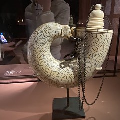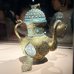 重要展品包括曾由法国国王路易十四收藏的玉杯,镌有萨法维王朝阿巴斯大帝名号的笔盒,展现17世纪莫卧儿帝国玉石雕琢精湛技艺的匕首,体现东方艺术影响的龙纹瓶等。