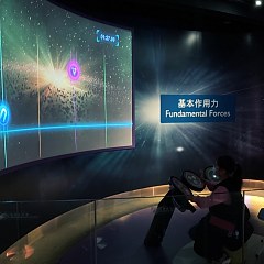 宇宙展览厅位于地下一层,由近至远探索宇宙的概念与演化过程,从我们身处的太阳系开始,逐渐向外推至恒星、银河系、以及更遥远的星系。参观者通过调整真空管中的太阳风速度,能在地球模型上自制极光;或是站在互动装置「重力冲浪」的滑板上,在太空各天体之间穿梭,了解重力如何令空间扭曲。