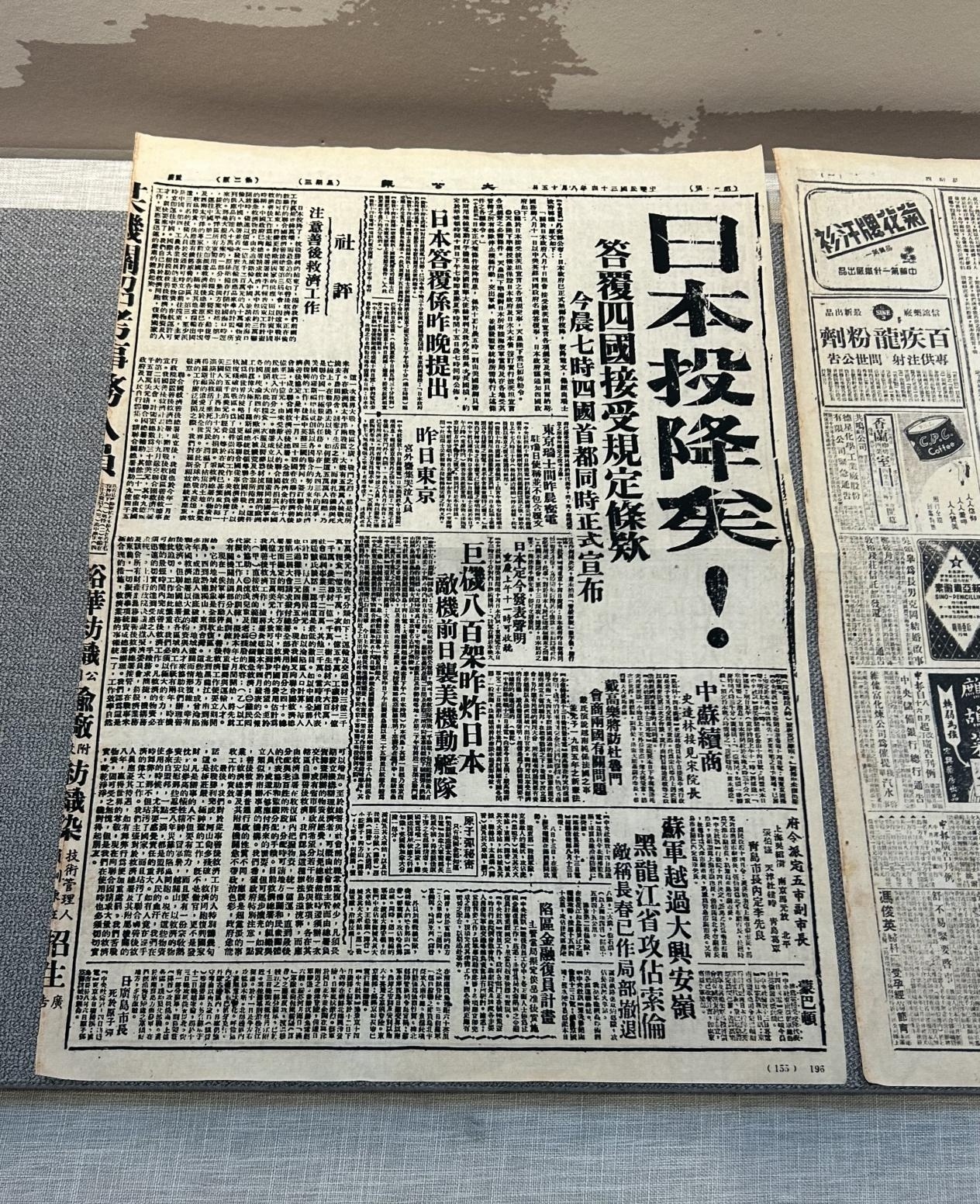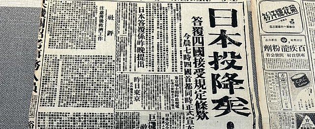 1945年8月15日《大公报》刊发「日本投降矣!」