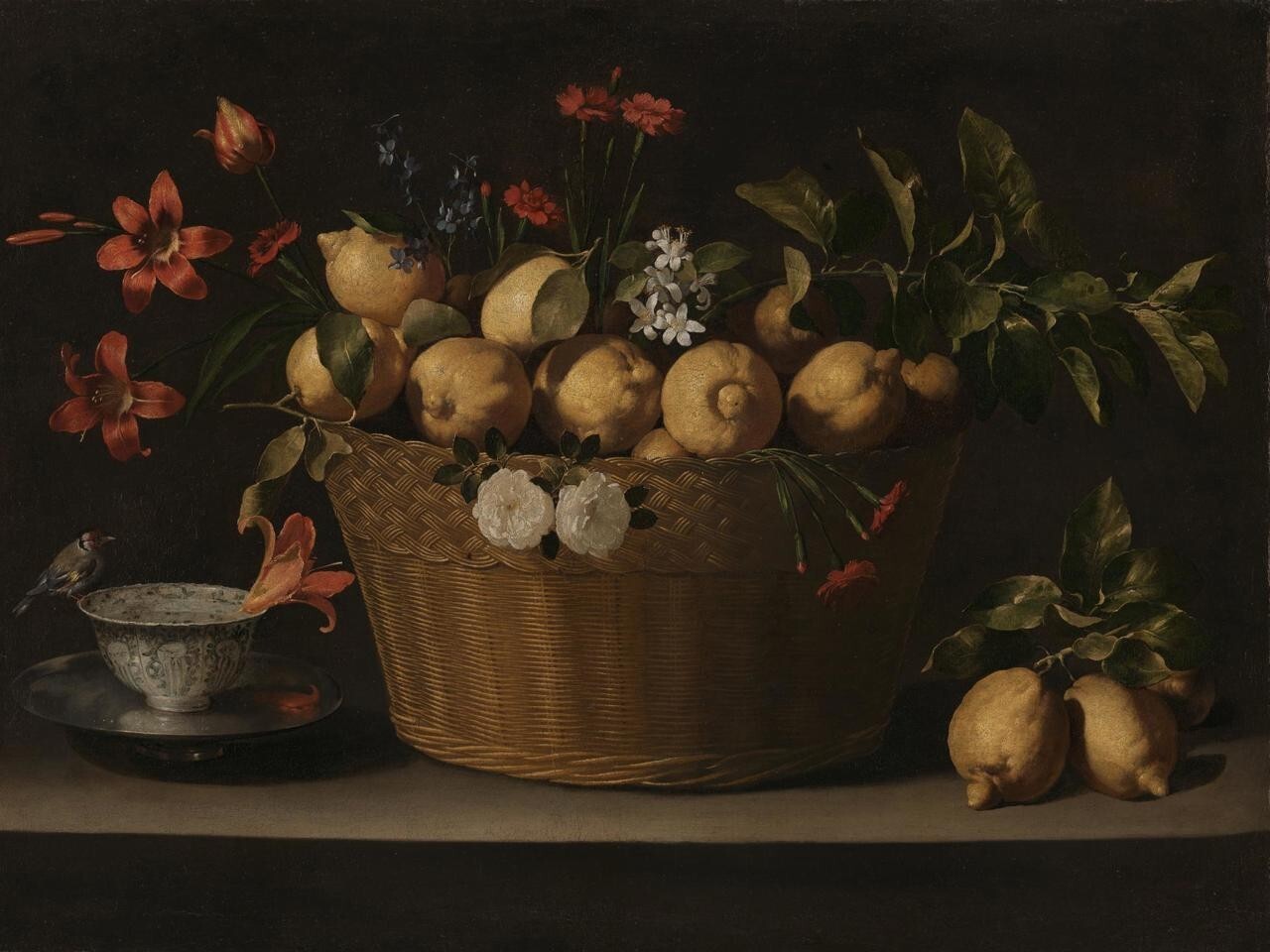 《有柠檬放在柳条篮内的静物画》(Still Life with Lemons in a Wicker Basket),Juan de Zurbarán,约1643-1649年,布面油画,英国国家美术馆藏