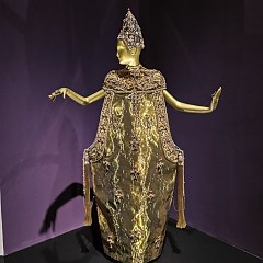 本次展览引进呈现法国凯布朗利博物馆、法国国家考古博物馆、法国国家自然历史博物馆、汇流博物馆等7家法国文化机构的200余件加金服饰,从「日落之地」马格里布到埃及尼罗河畔,溯寻东亚和北非各国纺织艺术品使用黄金的悠久历史。