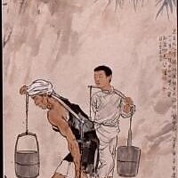 《巴人汲水》,纸本设色,1937年,徐悲鸿纪念馆藏