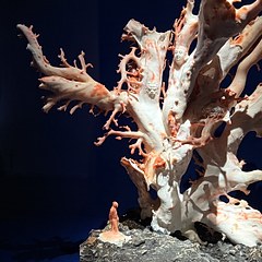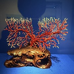 珊瑚是珊瑚虫分泌的支撑结构,其成分因种类而异,以碳酸钙集合体、有机质或角质的形式存在。珊瑚根据生长海域位置的不同,可分为两大类,一类是浅海的造礁珊瑚,俗称「珊瑚礁」,一类是深海的贵重珊瑚,即「宝石珊瑚」,其因孔隙较小、密度较大,成为珠宝首饰和雕刻艺术品的主要原料。