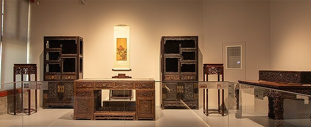 本展共陈列约50件明清及民国时期的家具,包括椅凳、桌案、床榻、柜架等,介绍中国传统家具的发展演变及造型艺术特点。明式家具以古朴大方取胜,注重卯榫结构的精密巧妙;清式家具在制作工艺上以富丽华贵见长,装饰手法丰富多样;民国时期的家具受西方影响,体现出中西合璧、探索求变的时代特征。