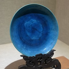 此器里外釉面呈均匀的青绿色,釉层凝厚,有玻璃光泽,器身布满细碎开片,因此被称为绿哥窑。