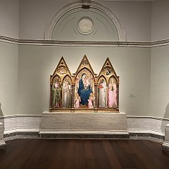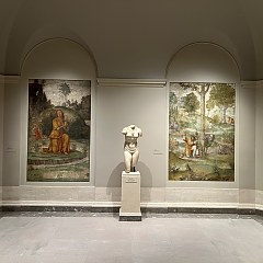 两组展品分别是 Rozeal 的《afro.died, T.》与 Titian 的《维纳斯与镜子》,Paul Cézanne 的《穿红马甲的男孩》与 Titian 的《拉努乔·法尔内塞》。虽然这些画作来自不同文化地区,创作时间相隔近600年,却拥有奇妙的视觉相似性。