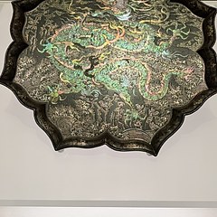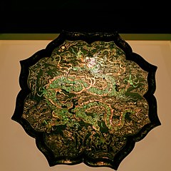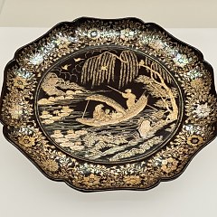 黑漆螺钿海水龙纹菱花形盘,元代,日本东京国立博物馆藏