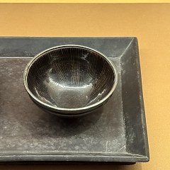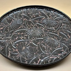 黑面剔犀如意云纹葵瓣形盘,元代,日本京都国立博物馆藏