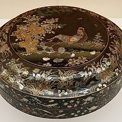 填彩漆松竹梅图圆盒,明宣德,东京国立博物馆藏