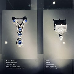 卡地亚创立于1847年,是世界上最负盛名的珠宝制造商之一。展览以时间为主线,分为两个部分:第一部分以20世纪初法国巴黎文化背景为引入点,讲述了卡地亚对伊斯兰艺术产生兴趣的起因与过程;第二部分以丰富的实物为例,介绍20世纪以来卡地亚的各种珠宝形式与风格,例如一件1930年用青金石和绿松石拼接镶嵌而成的香烟盒。