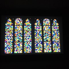 Richter 的作品《4900Colours(2007)》第七版是第一次公开展出,这件作品属于万花筒风格系列,由96块面板组成,每块面板中含有25个色彩方块,以11种核心样式排布在一起。这件作品展现了 Richter 自1996年起对色与绘画的初步探索,以及他对「去主观化」绘画的追求。