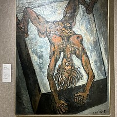 《戴帽子的女人》(1965年)描绘了毕加索的第二任妻子杰奎琳·罗克(Jacqueline Roque),金色帽子在生动的蓝色背景下显得格外突出,帽檐有效抵挡了法国南部夏日炙热的阳光,在杰奎琳脸上投下阴影,衬托出她悠闲怡然的脸庞,亦是画家彼时轻松愉悦的心境写照。