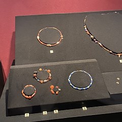 水晶绿柱石琥珀红玉髓玻璃珠,东汉,2003年番禺小谷围港尾岗M8出土