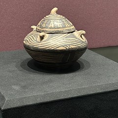 弧线纹四鋬带盖彩陶罐