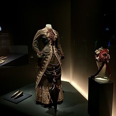 展出文物体现出法国时尚中多种文化的交融,如一件18世纪法国男性贵族的外套采用法国丝绸面料,而纹样模仿当时在法国被视为奢侈品的中国丝绸。观众从中可以看到中法之间的贸易与文化交流,以及中国丝绸对法国时尚设计带来的灵感。