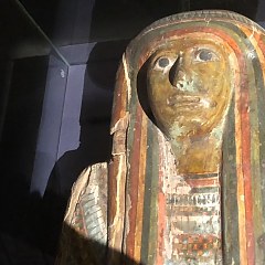 展品包括前王朝时期的花瓶、秃鹫形金吊坠、串珠项链、心形护身符、瞳孔镶纯色彩陶的荷鲁斯之眼护身符、成年女性的木乃伊、身着褶皱外衣的巫沙布提俑、描绘亡灵死后前往冥殿的彩绘墓碑、来自底比斯神庙祭司的彩绘人形棺等。