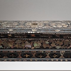 黑漆嵌螺钿缠枝花卉纹银锭形盒,元代,旧金山亚洲艺术博物馆藏
