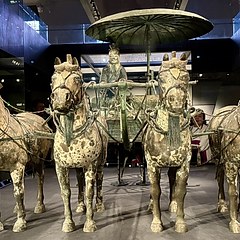 1980年,临潼秦始皇帝陵封土西侧的一个陪葬坑内出土了两乘大型陪葬铜车马,两乘车一前一后置于同一木椁中,经复原后大小约为真人真马的二分之一,制作年代不会晚于陵墓兴建时期,即公元前210年之前。