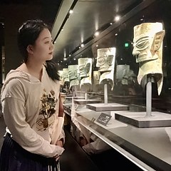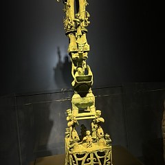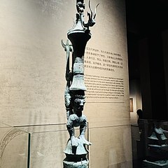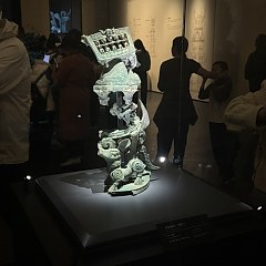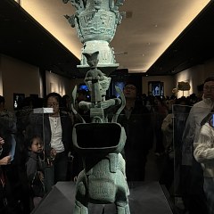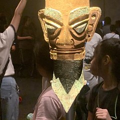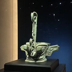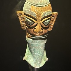 青铜馆的陈列分为5个部分:「奇秘面具——三星堆青铜面具」「人神共舞——神巫群像与祭祀大典」「千载蜀魂——奇绝的宗庙秘宝」「千古之谜——三星堆猜想」「心路历程——三星堆发现故事」,展出131件(套)青铜文物,探索三星堆文化中「人与神」的主题。