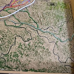 第一单元「时光序曲:地质变迁与生命开篇」以地质演化和古生物发现为主线,通过大型互动沙盘动态展示黄河与海河水系形成及历史改道过程。重点展品包括墙体嵌入式岩矿标本、中国第一件旧石器模型、第一件古人类化石模型等。