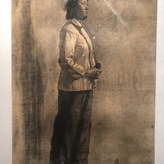 第二部分「迁徙」(1937-1949),主要展示学院从西迁至重回杭州时期的作品和文献,这段时间受战争影响,教学资源贫乏,保留下来的作品很少。校友唐献瑞捐赠的抗战时期师生作品是首次在母校展示。