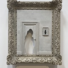 另一个展厅则布置成一个幽暗美术馆空间,展现倪有鱼对 Rene Magritte、Vincent van Gogh、Giorgio de Chirico、Edvard Munch 等艺术家的致敬。展品中的小幅绘画是倪有鱼2017-2019年旅居欧洲期间在不同寓所的浴室内完成。