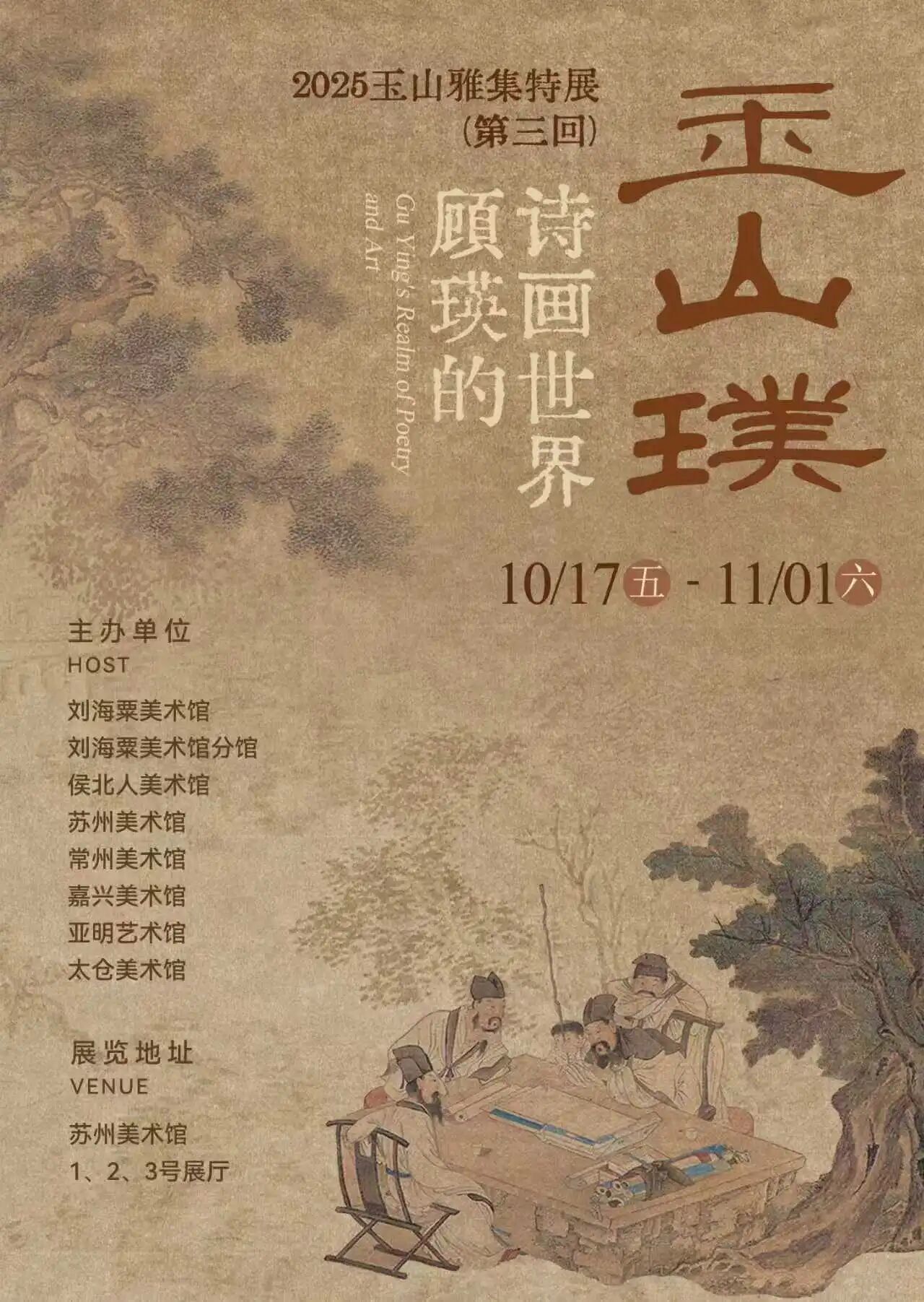 「玉山雅集」由元代名士顾瑛发起于昆山,前后持续十余年,举办次数逾五十次,参与人数上百,是元代规模最大、历时最久、创作最丰的诗文艺集,与东晋「兰亭雅集」、北宋「西园雅集」并称三大雅集,是江南文化的重要源流之一。