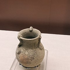 左至右:黑色刻划石板、釉陶瓶、釉陶瓶