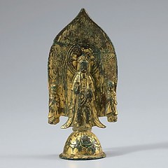 铜鎏金菩萨三尊背光像,三国时期,6世纪