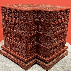 雕漆落花流水缠枝花卉纹车式套盒,清乾隆