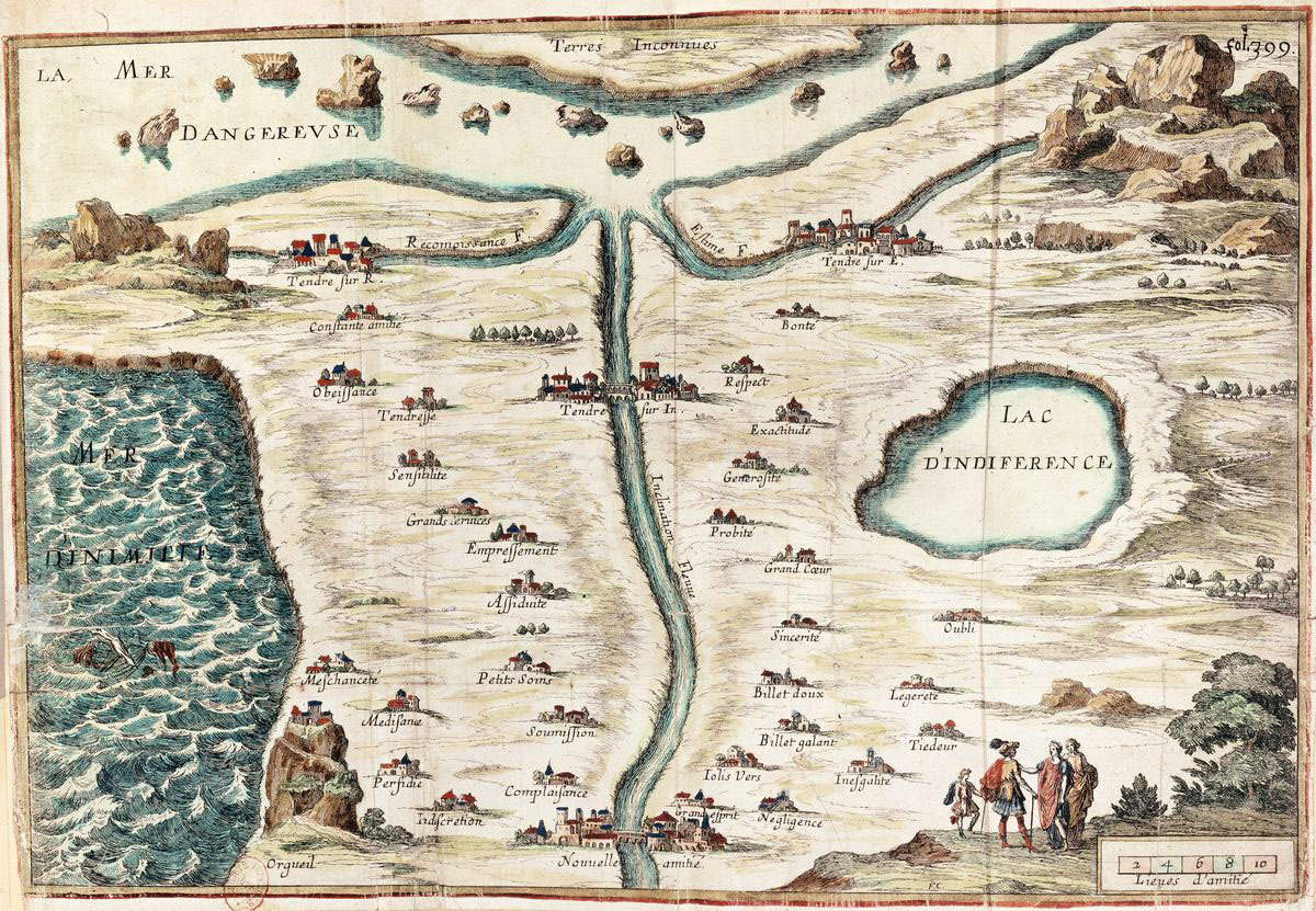 《温柔之地地图,出自<克莱莉:罗马史>》(Carte du tendre ; dans Clélie, histoire romaine),Madeleine de Scudéry,1654年