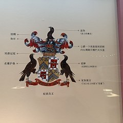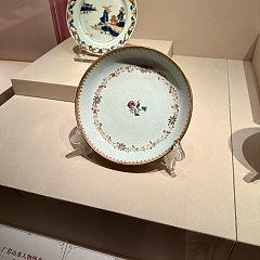 青花矾红描金纹章纹浅瓷盘,清乾隆