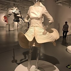 他从自然万物中汲取灵感,以蜷曲或舒展的树叶形状作品展现自然的季节轮回,将纸张和细竹条之间挤压出的褶皱想象成风和水的形态,这些雕塑作品经常被悬挂在高大广阔的空间内展示。此外,他还用纸张制作出具有褶皱裙摆的女性时装作品,尝试探讨纸张与人的关系。