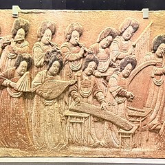 白石彩绘散乐浮雕,五代