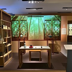 「茶韵酒香」展现酒与茶的诞生、加工制作、饮用及衍生文化。中国人饮酒和饮茶的历史悠久,酒使人沉醉,而茶使人清醒,两者给饮者带来不同的享受,也满足了人们不同的精神需要。文人墨客书写的诗文词曲亦成为酒文化和茶文化的组成部分。