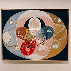 Hilma af Klint(1862-1944)出生于瑞典斯德哥尔摩,20岁时入读斯德哥尔摩美术学院,创作了不少学院派肖像画和风景画。1900年左右,她开始接触通灵学(Spiritism),对抽象主义和象征主义产生兴趣。