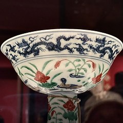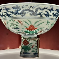 青花五彩满池娇图靶碗,明宣德,萨迦寺藏