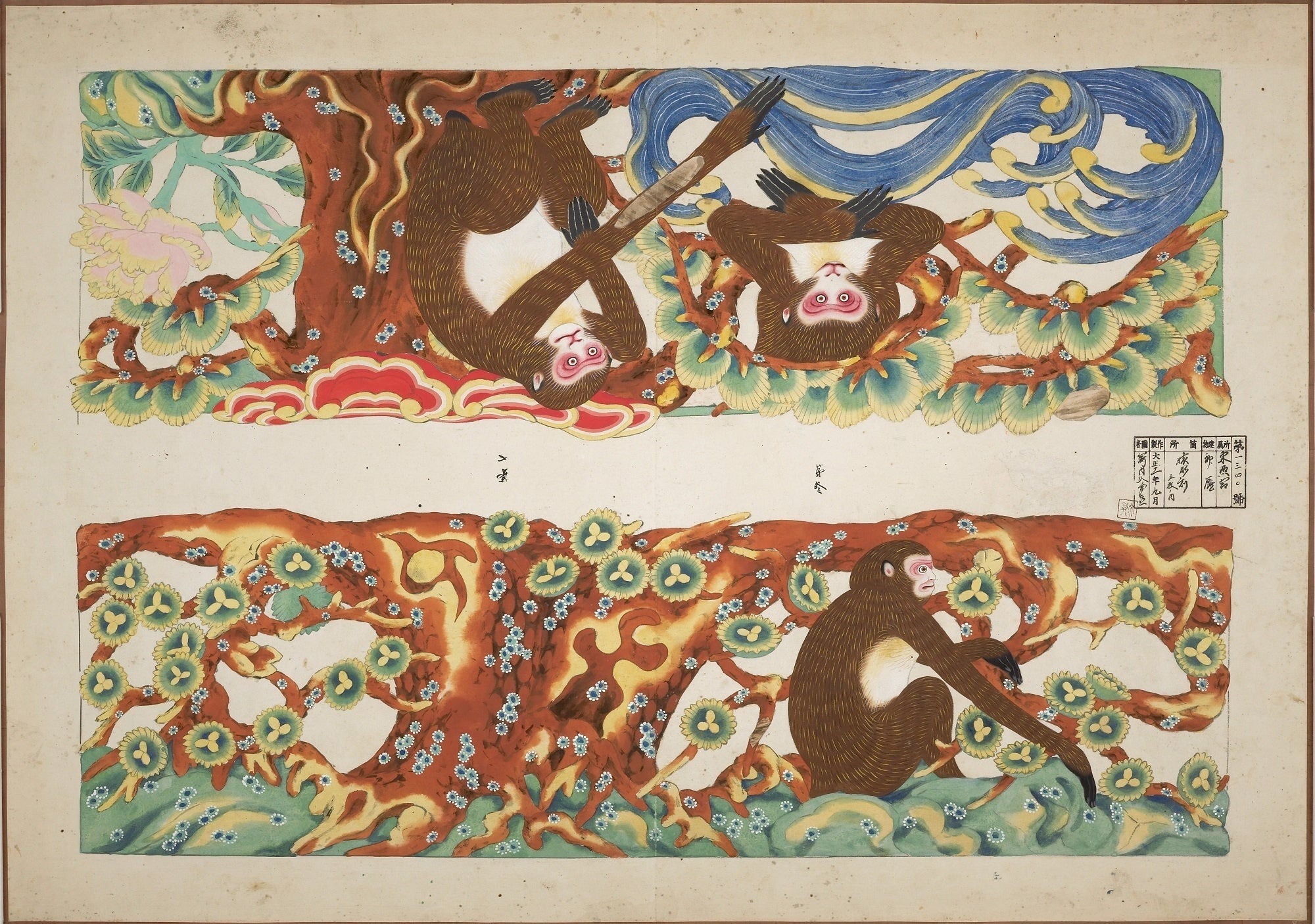 东照宫下神库蟆股雕刻及枇杷板彩绘示意图