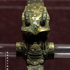 暗花纹鎏金鸟形籥铜戈,大云山汉墓